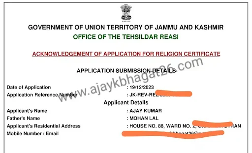 How to apply for Religion certificate in Jammu and Kashmir @Jansugam Portal J&K